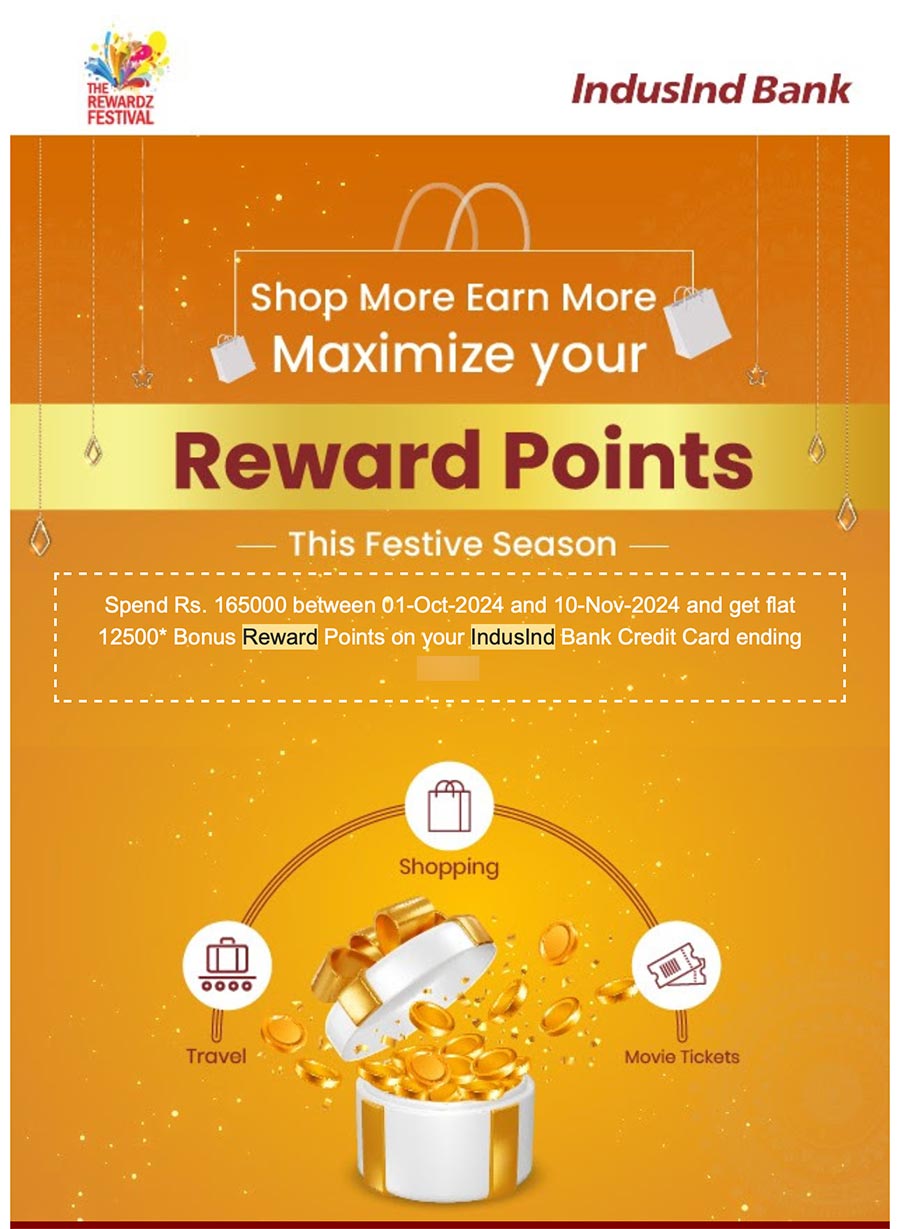 Emails had been despatched with topic line “Rewardz Pageant’25 is right here! Your Alternative, Your Reward in your IndusInd Financial institution Credit score Card”.