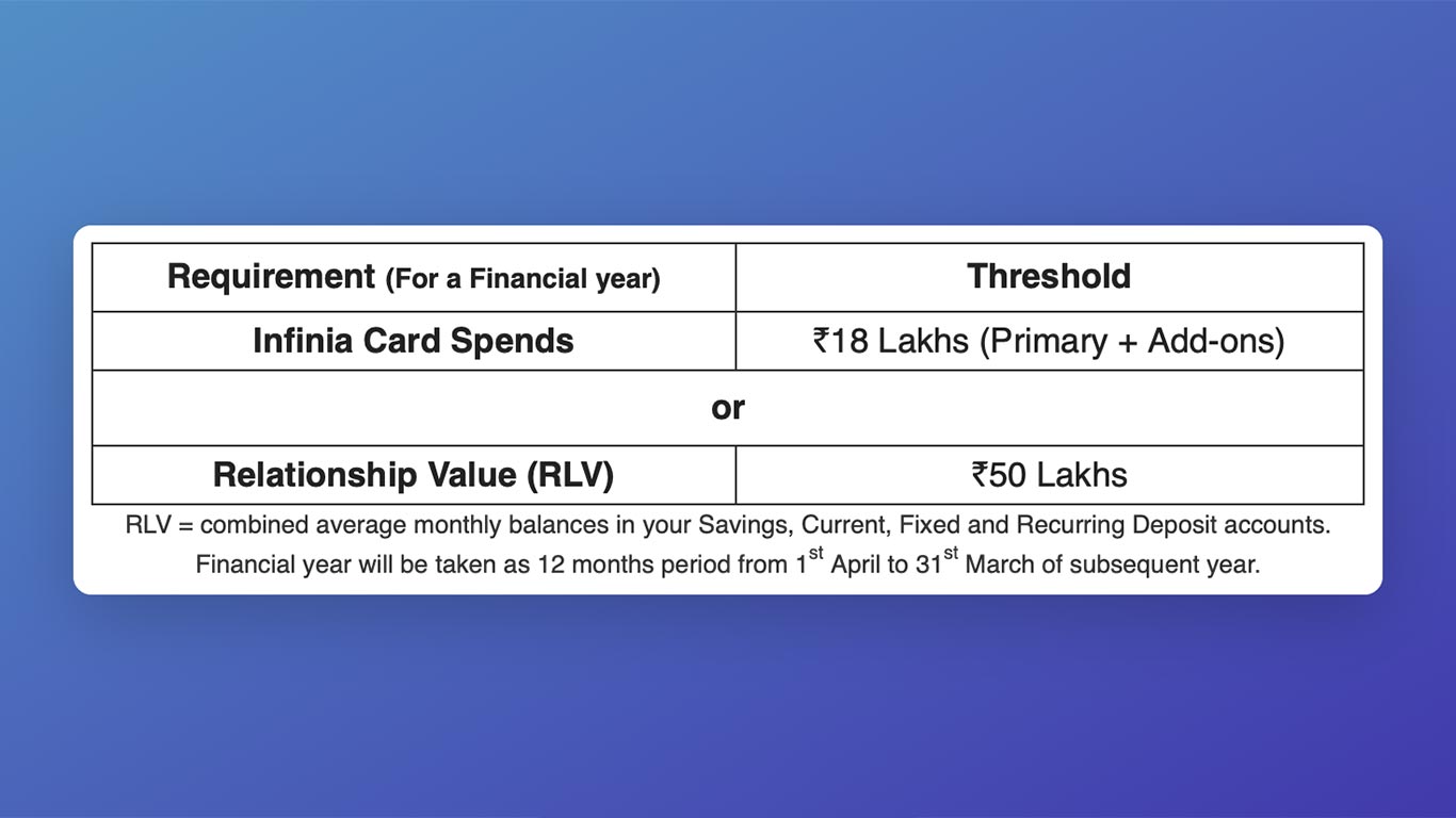 - Spend ₹18 lakhs on the Infinia card between April 1, 2026 and March 31, 2027, or